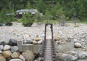 ![]() 湯俣温泉までの行程中ほどまでは、車が通れるトンネルとダートの林道だ。ダム湖の湖畔からの眺めはとてもすばらしい。北アルプスの深い谷と、少しだけ顔を見せる雪渓が残った高峰が日本の景色とは思えないほどだ。 ![]() 行程の中ほどから先は登山道のようになる。登山道も要所に木道が整備されていて歩きやすい。東京電力による整備なのだろう。なかなか立派な道だ。途中には避難小屋の「無名小屋」がある。 ![]() 高瀬川の右岸をずっと歩いていくとついに湯俣温泉に着く。最後はつり橋を渡って晴嵐荘に向かう。 |