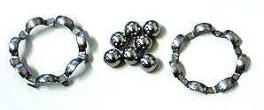 ベアリングの中を覗くとボールを等間隔に分けて保持する部品がある事に気付きます。この部品をケージまたはリテイナ−と言います。この部品はボールを放射状に均等に配置し一方向からの力を分散させると共に一つのボールが受けた圧力を回転しながらスムースに次のボールへと受け渡す為に重要な役割を果しています。そしてこの部品は回転するボールを固定している以上、ベアリングの回転性能に大きく関係しています。