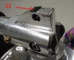 写真の位置に強力両面テープでゴムを接着。ゴムの厚さは0,5mm、1mmのゴム板も試してみましたが厚すぎてスティックを立てた時にロックできませんでした。 ただ、0,5mmでは薄すぎて接触してくれませんのでシリコンゴムを盛ってクッションになる様に厚みを調整しています。シリコンゴムは非常に弾力性があるので多少厚めに盛っても大丈夫です。 |