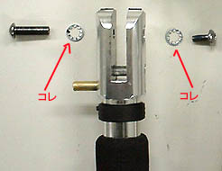 スティック長を調整するレバー部分は同一の物の様です。スペアパーツとして使えますね。 |