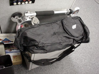 | キックボードユーザーとしてはあると便利なアイテムです。折り畳めてコンパクトになることを意識した為かどうかわかりませんが、生地が薄く強度的に非常に心配です、特に縫い目の部分。力が加わった部分の縫い目は糸を通した穴の部分から広がってきています。ちょっと不安、、、。 | |