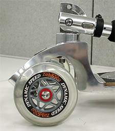 貼ってみるとこうなリます。速そうな雰囲気になり、何か本格的!?雰囲気が漂います。もっとバリエーションが欲しいところですね。 ウィールってステッカーの効果が最も現れるところかもしれませんね。 |