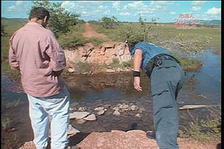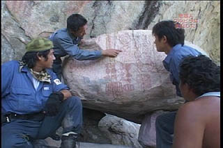藤岡隊長 「これは宇宙人だな!」 岩に描かれている人の形らしき文字を宇宙人と断定 |