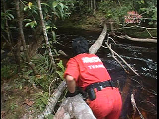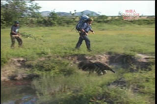 オオアリクイと死闘か!? 橋が流され車が使えなくなったため、徒歩で進む探検隊の前に大アリクイが出現 |
