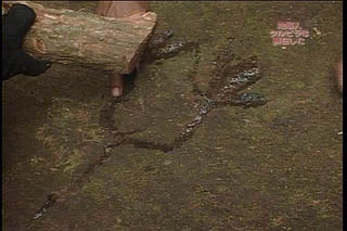木を切り取りその樹液を水代わりに垂らすと模様がくっきりと・・・ | |
