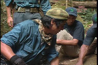 塩が無くなっている事から、原住民はたぶん敵意はない?と言う事で集落に向かう 原住民の罠に引っかかる隊員! |