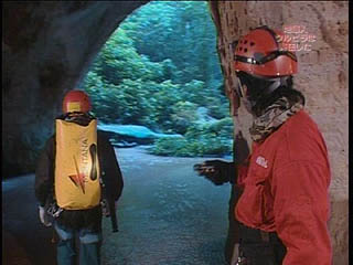 洞窟の中を流れる川の上流方向と下流方向どちらに進むか?隊長の選択が迫られた・・・ 隊長は下流方向を選択した! |
