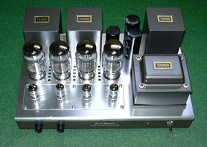 6550, KT88, 6CA7/EL34, 6L6GCなど多くの出力管を差し替え可能なパワーアンプです。調整は最小限とし、なるべく多くの真空管が利用可能になるように設計しました。前段も多くの双3極管が差し替え可能で、これにより歪み率やダンピングファクターをコントロールできるユニークなアンプです。