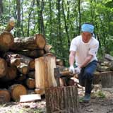 | 伐採後、1.5〜2年間乾燥させるので 、常に2年分の薪を確保しておかなければならない。だから、森林組合はとても有り難い存在なのである。 | ![]() |