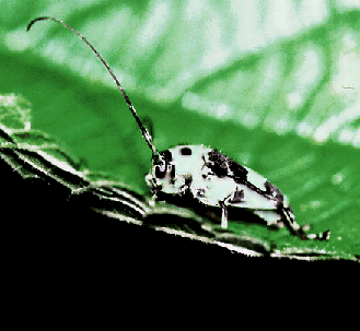 南方より北上しつつ分布域を広げているカミキリである。ここ西多摩でも多産するようになった。