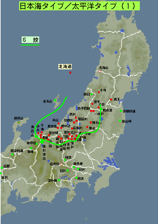 - 先ずS紋における日本海側タイプ/太平洋側タイプの分布を図3に示した。