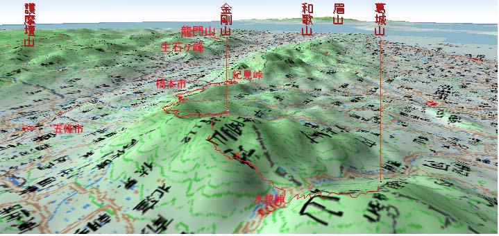 カシミールの2700mから見た地図との合成表示。赤の実線は歩いた軌跡です(約17キロ)