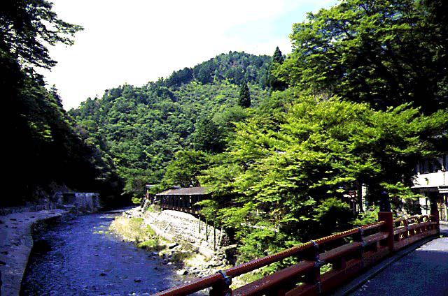 川に迫り出した桟敷席より紅葉を眺めながら一杯〜。ああ〜たまらないねぇ〜(^^)