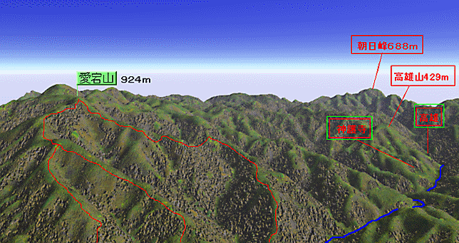 愛宕山とその周辺の展望図(高度1000mから見た場合)