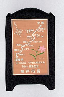 六甲縦走完走記念盾。右はタバコの大きさです。
