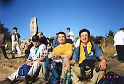 いよいよ第一の最難関、菊水山の登りである。急角度直登に階段があるといえ、一気の登には厳しい。