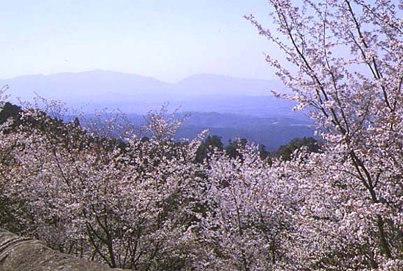 高城山展望台より見た大和の山並。左に金剛山、右に葛城山。