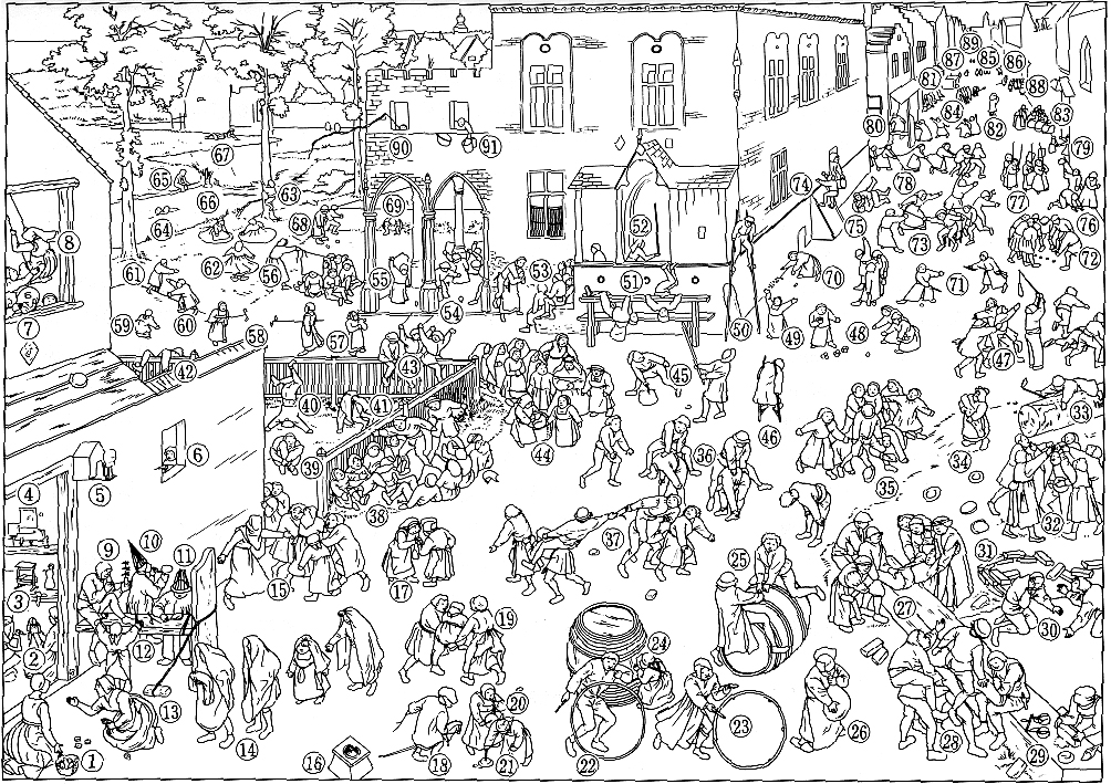(参考文献:ブリューゲルの「子供の遊戯」─遊びの図像学─(森洋子著/未來社) |