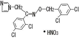 | 硝酸エコナゾール | ![]() | 液、クリーム1%。1日2〜3回塗布。 | 抗菌スペクトルが広く、皮膚糸状菌以外、放線菌やグラム陽性菌にも強い抗菌活性を示す。殺真菌作用が強い。細胞膜の物質輸送と透過性障壁を阻害し、細胞発育阻止または細胞死に至らしめる。 |