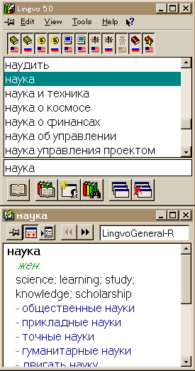 英和辞典などにはエディタ上で単語をCtrl+Cによってコピーするだけで検索語の欄に単語が張り付き、自動的に検索してくれるものがあるが、この機能は是非とも欲しい。そうなればCtrl+CとAlt+Tabだけでロシア語⇔英語⇔日本語が変換できるということになる。しかし、ロシア語⇔日本語が直接検索できる辞書の登場が最高の福音であることは間違いない。