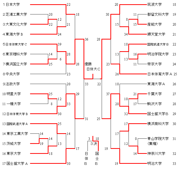 国士B 32 (17- 5, 15- 5) 10 千葉大