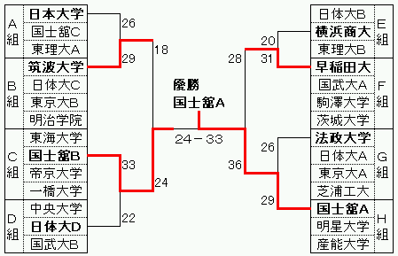 決勝 国士舘A 33 (14-11, 19-13) 24 国士舘B