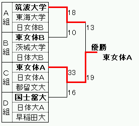 決勝 東女体A 19 ( 8- 7, 11- 6) 13 筑波大