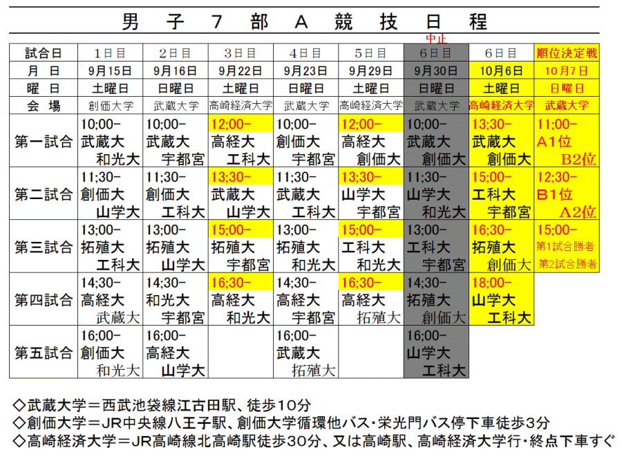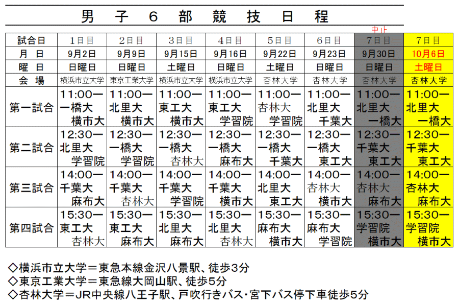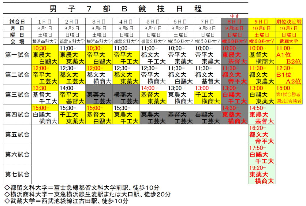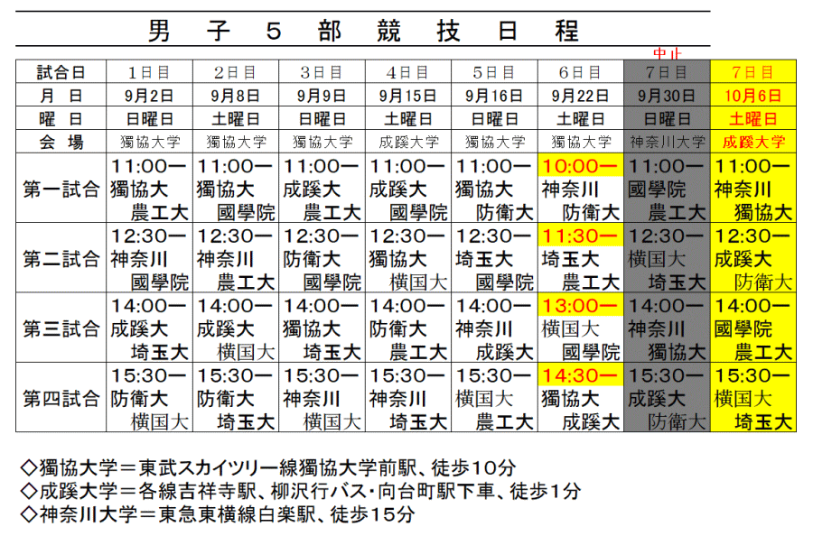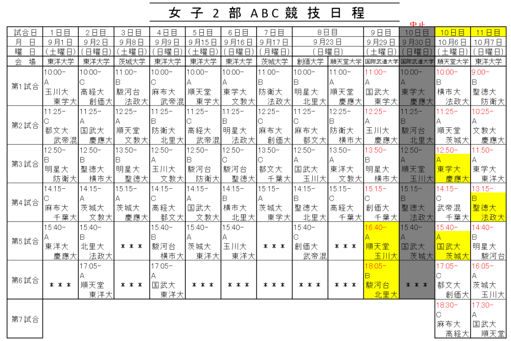 2018年関東学生ハンドボール連盟秋季リーグ戦日程表