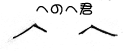 右2.図のように裾を整えよう。そしてシワの溜まりのところにへのへ君を差し込もう。