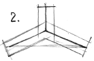 できたかな? 上手く描けたら今度はそれをいろいろな角度から描けるようになろう。角度が変わったら上手く描けないと感じたら右の図ように骨組みを描いてからすすめよう。
