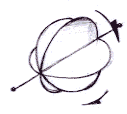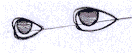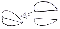 目の形を左の図のようにかんがえてみよう。半円形の紙が中心線を軸にパタパタ回っていると理解しようね。下の図は更にパタパタを二枚くっつけた所を示してあるんだ。このパタパタをいろいろな角度でくっつけてためしてみよう。ここまでいいよね。