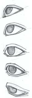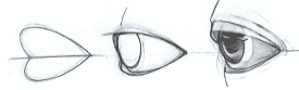 角度がだんだんついていく目の様子をここの時点でしっかり理解しておこう。簡単でしょ。さらさらーっと描いてみましょう。