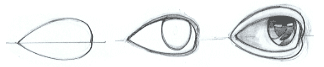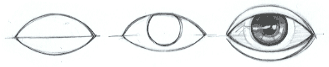 お次は少しだけ左の方を見ている目を描こう。システムはいっしょだからわかるでしょ。