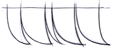 このナイフの先っちょのような形をしっかり覚えましょう。初心者の方は基本線を引かずに綺麗なカーブがニ本描けるように練習しようね。
