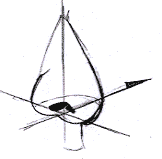 みなさん、左の図を見て下さい。鼻のかたちを簡単にしたものです。この三角の箱のかたちを頭に刻んでね。すっぽり鼻をつつんでいるのがわかるでしょ。これから顔を描くときかならずこの三角の箱をうすく描いてから描くようにしようね。そうすれば鼻のバランスをくずしてへんな鼻になることは絶対ないからね。お願いだからこのやり方でしてね。とってもいい方法なんだから