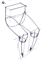 4.3の直線を基に膝をデッサンし、下腿部をくっつける。足の骨の向きはカタカナのハの逆さまを意識して描こう。
