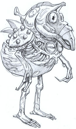 この右上図の猫科のモンスターはね、ほらほらよく見てよ、お腹にもう一匹いるでしょ、こっちがブレーンなんだ。だから大きな方の目は退化してるんだよ・・・てな具合に自分で考えたモンスターのうんちくを垂れよう。あははは、おもしろいでしょ。