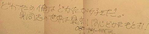 どっちも魂のほとばしりを感じます。文字で書いてあるのに、叫んでいるように見えるから不思議だ。 ネットサーフィン中のどかたでホモの人、いますぐ恵比寿へ。