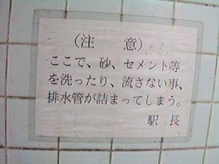 掃除用のモップとかを洗う流しに張り紙がしてありました。クリックしてみてください。