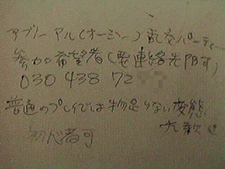 パーティーの案内です。PBというのはポケットベルのことのようです。