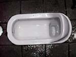 濡れ濡れタイプのトイレです。でも、掃除直後で床が濡れているんじゃなくて、小便で濡れてるようです。