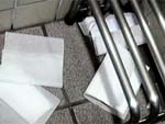 備え付けの紙はありませんが、入り口で売っているちり紙が散乱していました。