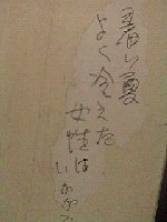 上の落書きと同じ作者によるものと思われる落書き。よく冷えたって言ってもねぇ。