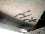 天井にスプレーで書いてありました。「九工」?。九州工大のことか。