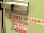 トイレのドアにビデオのラベルが貼ってありました。しかもアダルト。