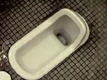トイレは比較的きれいで、広くてがらんとしています。でも、フックがないので、着ていたコートを抱えながら用を足さなければなりません。紙はなし。