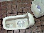 謎のでっぱり。和式便器で足が疲れたら、ここに座って足を休めろということか?