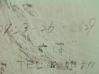 よくある電話番号が書いてある落書きですが、名前が「さば」?「さぼ」?って書いてある。