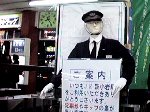 そして、改札にはこんなマネキン駅員がいます。 よくみると、目と髪の毛がマジックでかいてあります。近所の西友からもらったのでしょうか。