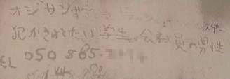 いつもの落書き。よくみると、1行目まんなかへんに「ラッシュ」って書いてある。